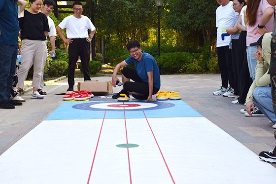 6月30日上午,心理素質(zhì)拓展活動在大家的熱情期待中拉開帷幕。團體破冰后,在拓展老師的帶領(lǐng)下,全體輔導(dǎo)員老師積極投入數(shù)字團建主題活動。大家集思廣益,積極行動,施展唱演跳等渾身解數(shù),挑戰(zhàn)一個又一個主題任務(wù)。過程中雖然頂著烈日驕陽,卻充分發(fā)揮了輔導(dǎo)員們的創(chuàng)作能力和團隊協(xié)作能力,爭先恐后為團隊榮譽拼盡全力。下午的旱地冰壺運動中,四支輔導(dǎo)員隊伍分別進行“冰壺對抗賽”,過程中充滿了碰撞聲和喝彩聲。隊員們在比拼中感受挑戰(zhàn)帶來的喜悅,在笑聲中感受心靈的放松。